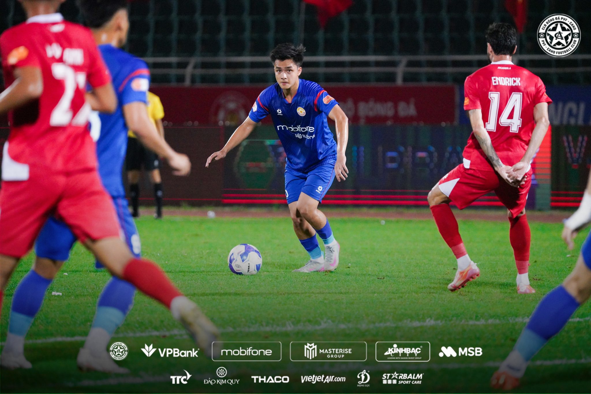 Ngay từ những phút đầu, đoàn quân của HLV Trần Tiến Đại chủ động triển khai lối chơi và tạo ra một số cơ hội đáng chú ý. PVF-CAND thậm chí đã đưa được bóng vào lưới đối phương trong hiệp một, nhưng bàn thắng không được công nhận sau khi trọng tài tham khảo VAR.